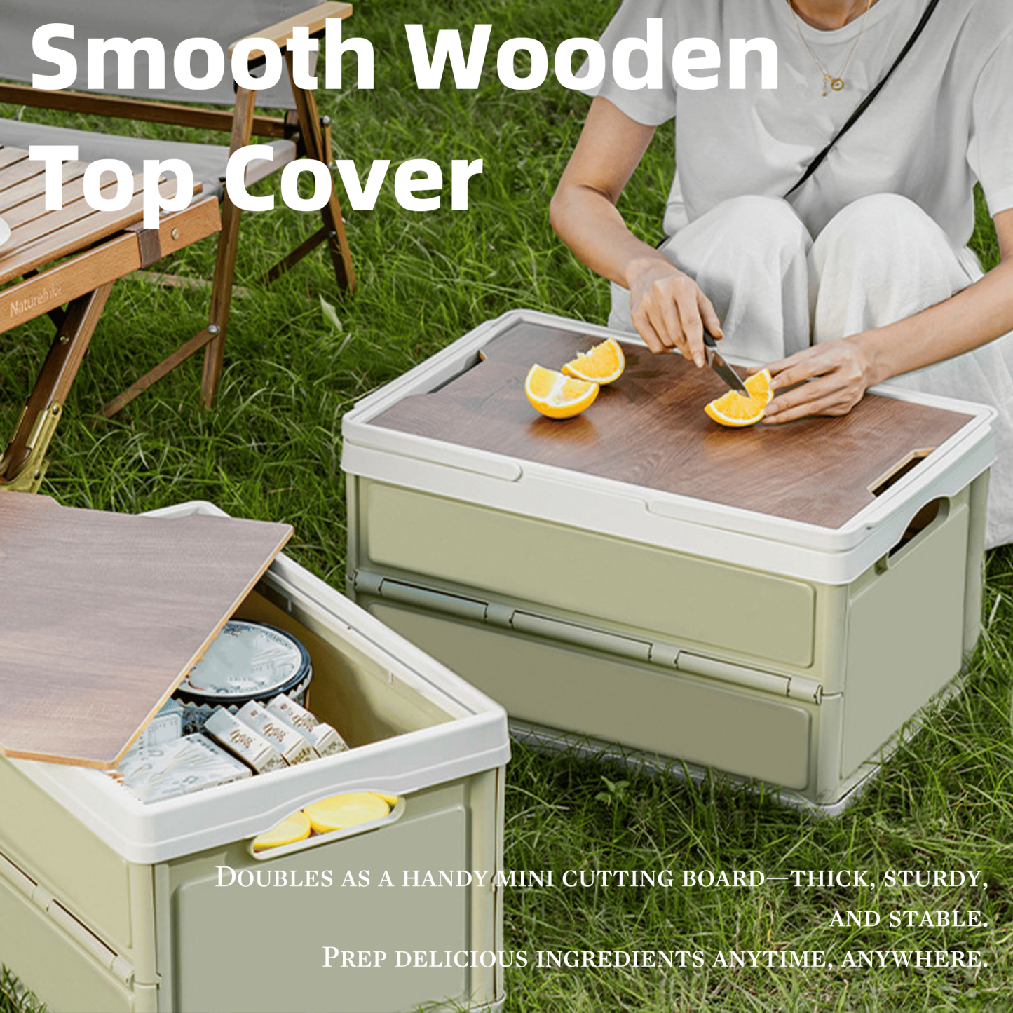 - Doubles as a cutting board outdoors