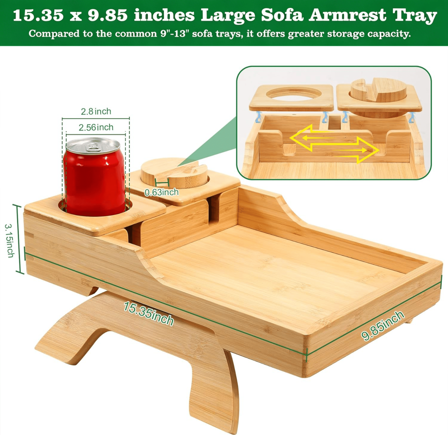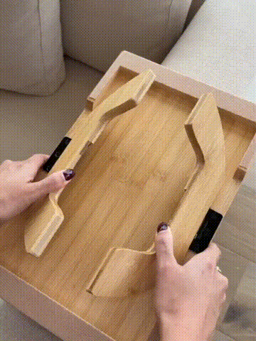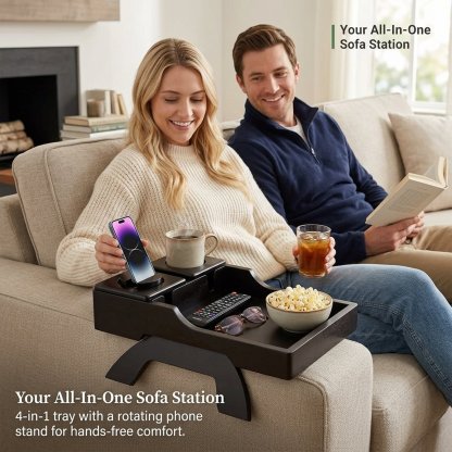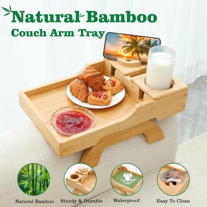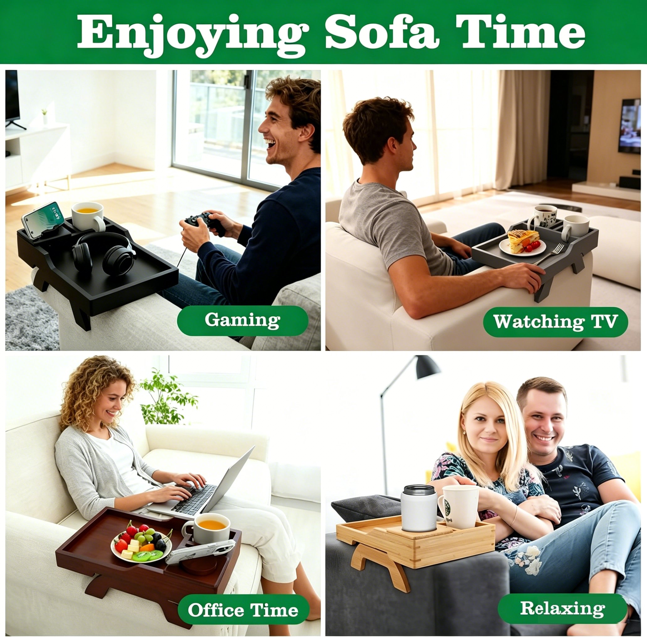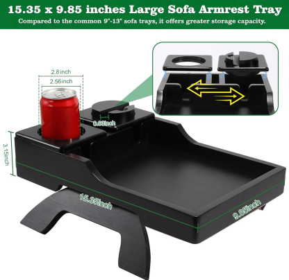 Place the tray over your sofa arm and adjust for a snug fit - Set Your Items