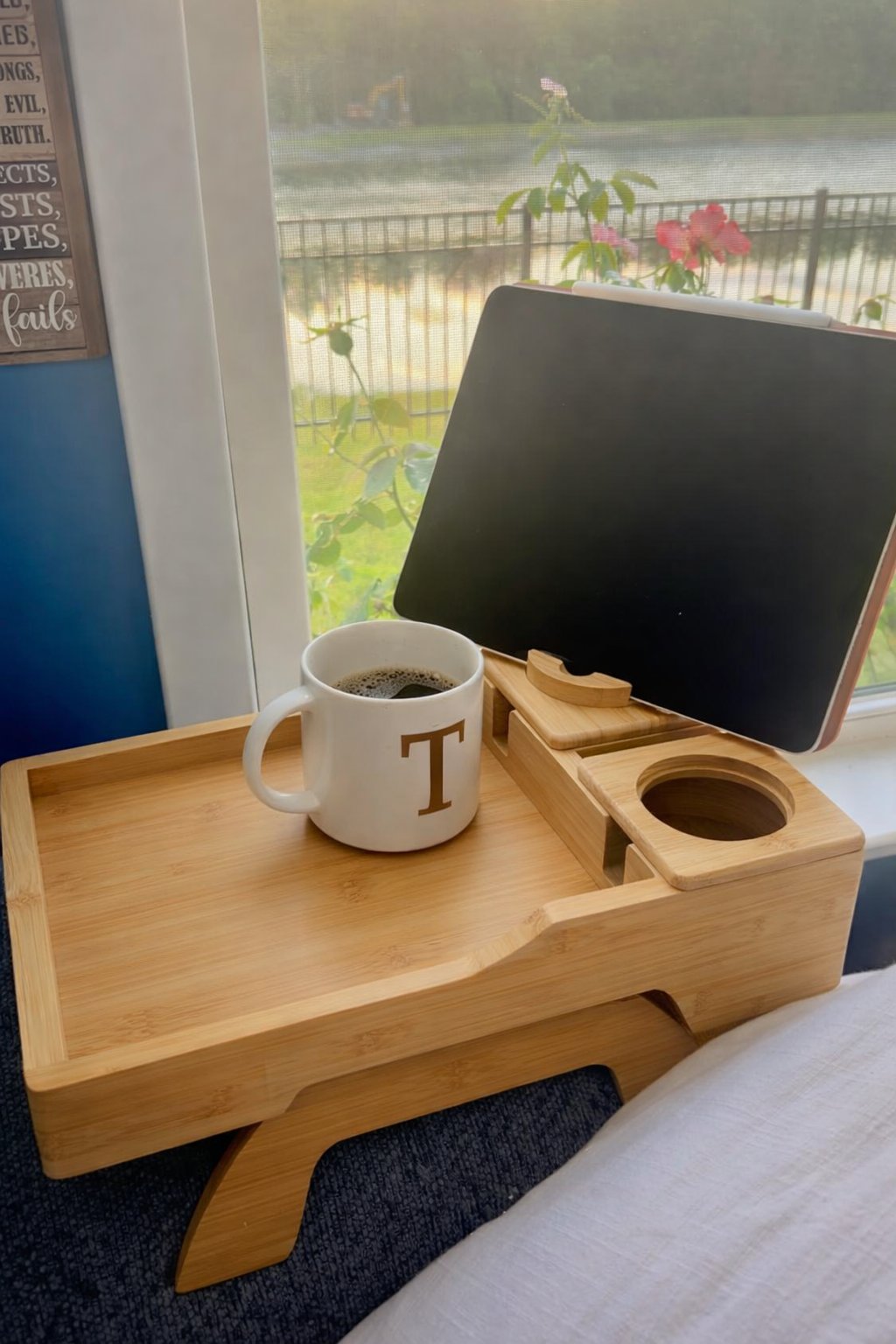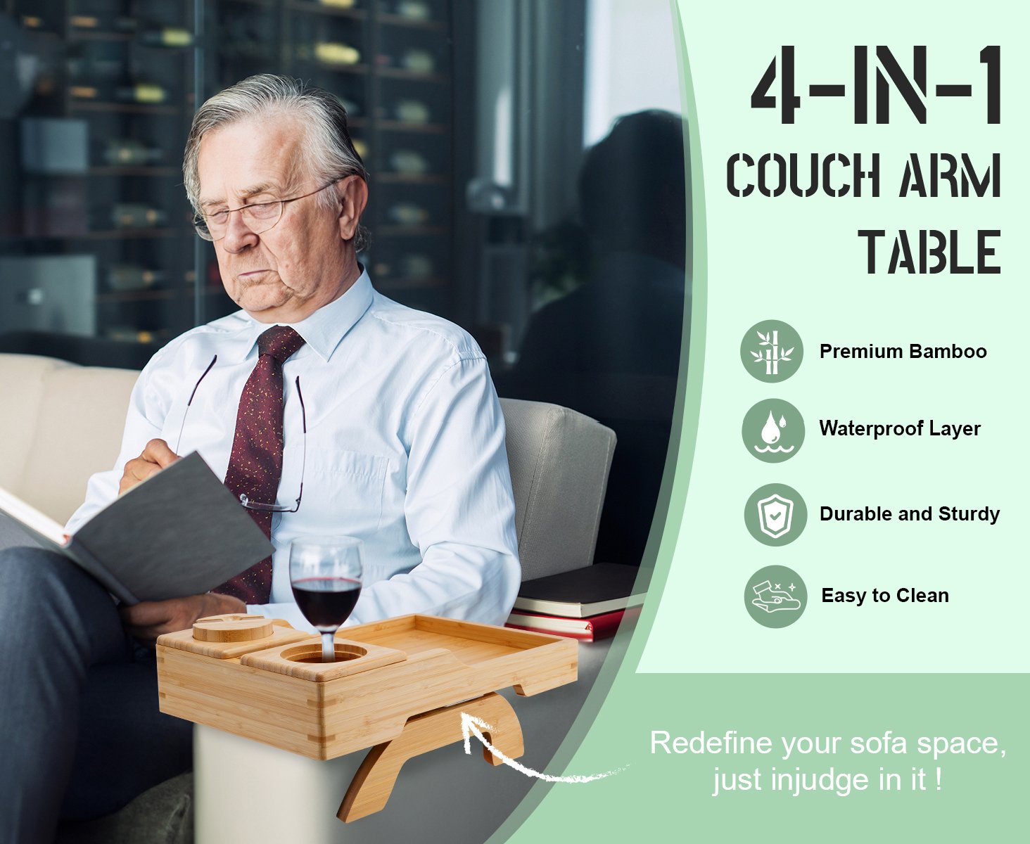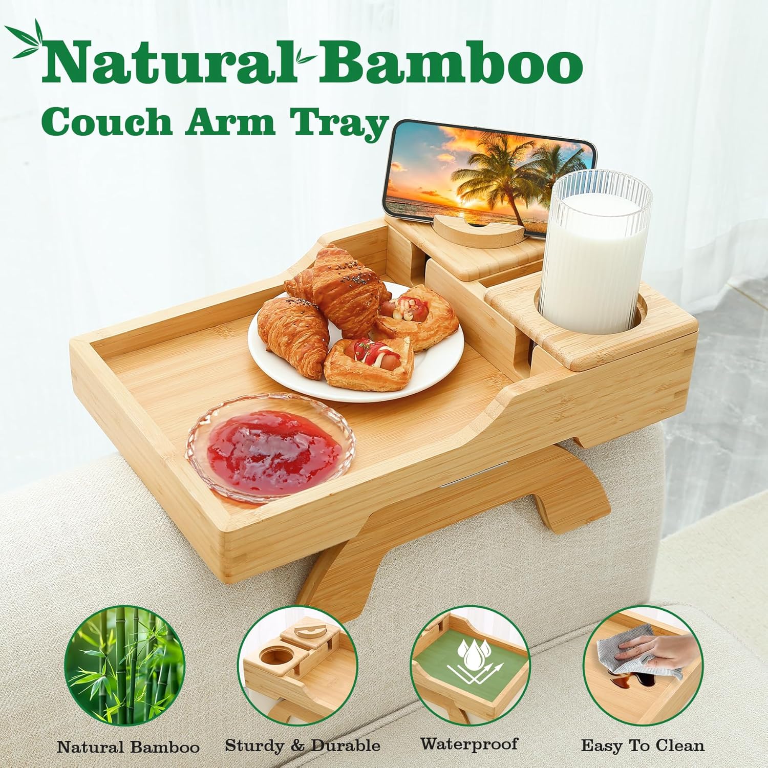 Place the tray over your sofa arm and adjust for a snug fit - Set Your Items