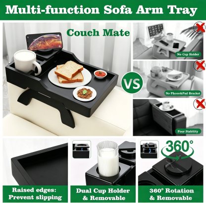 - Clip-on design fits most sofa armrests (up to 13" wide)