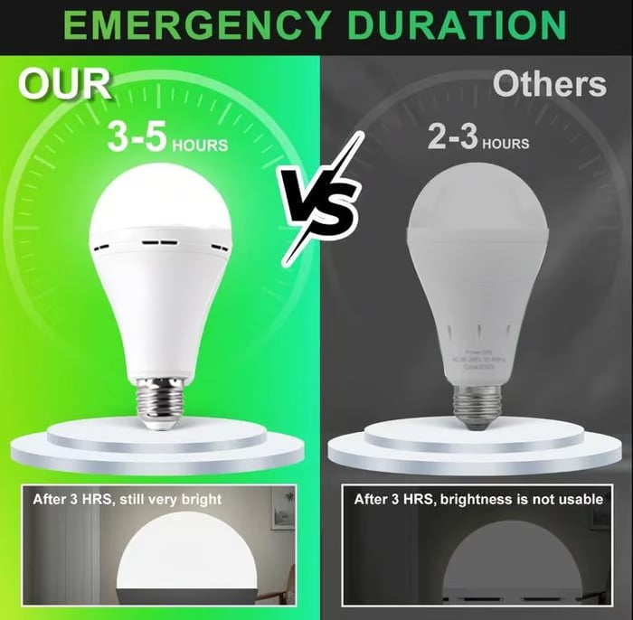 When power is interrupted, the bulb instantly switches to battery mode and delivers up to 3–5 hours of illumination, helping keep your home safe and functional.