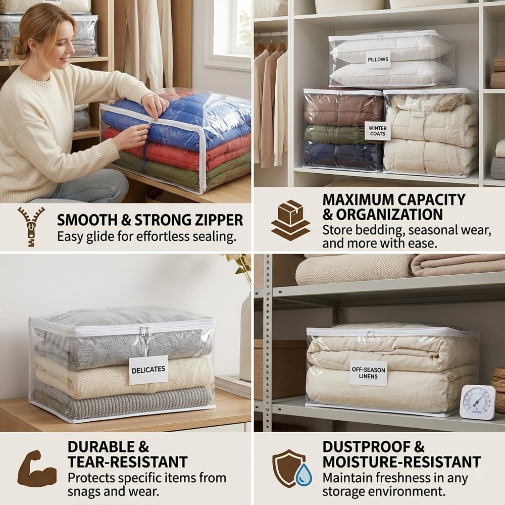 Say goodbye to messy closets and hidden items! These clear storage bags help you organize, protect, and easily find everything at a glance 👀