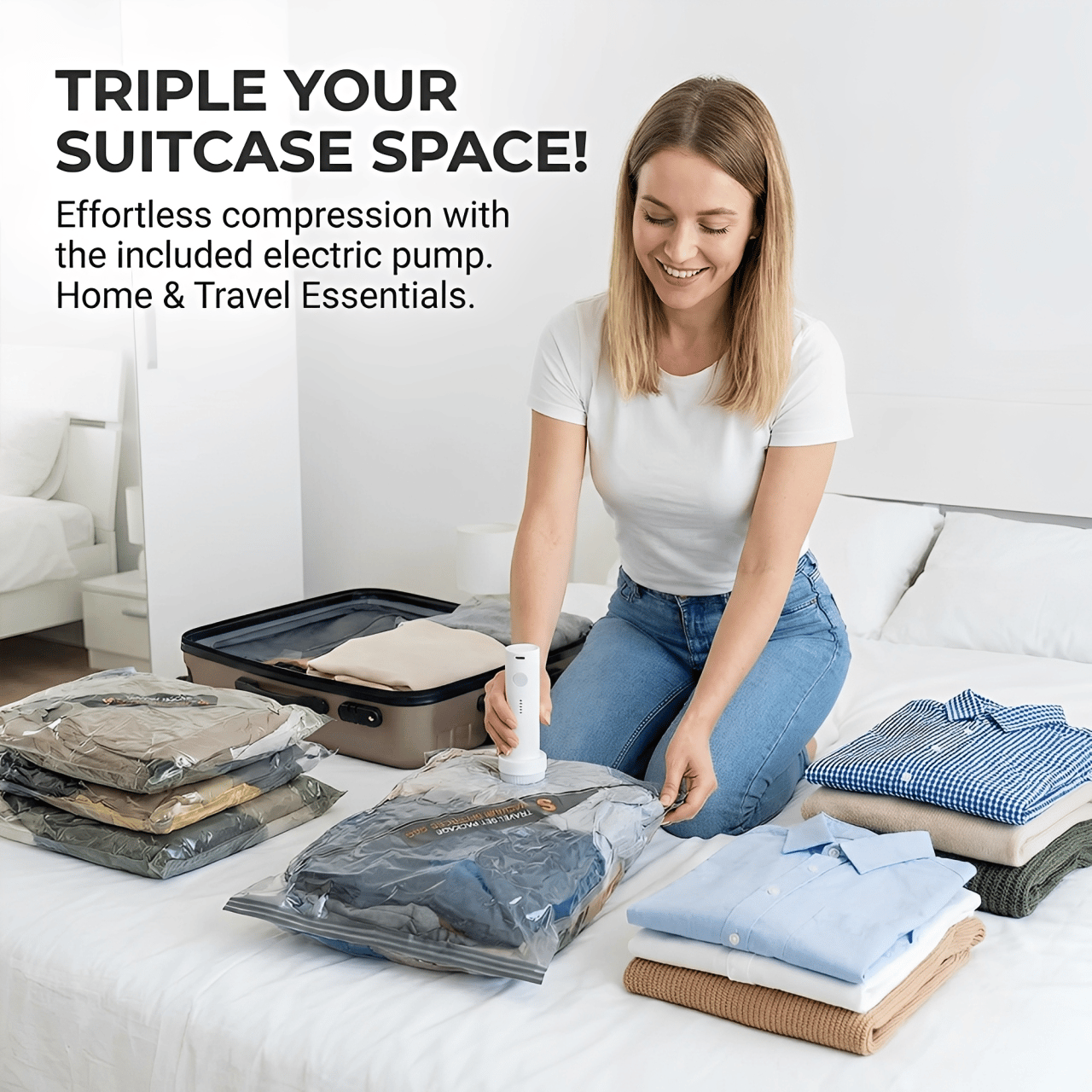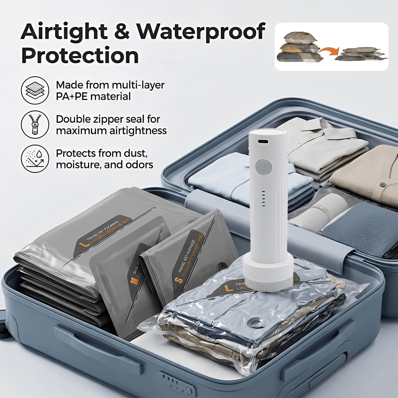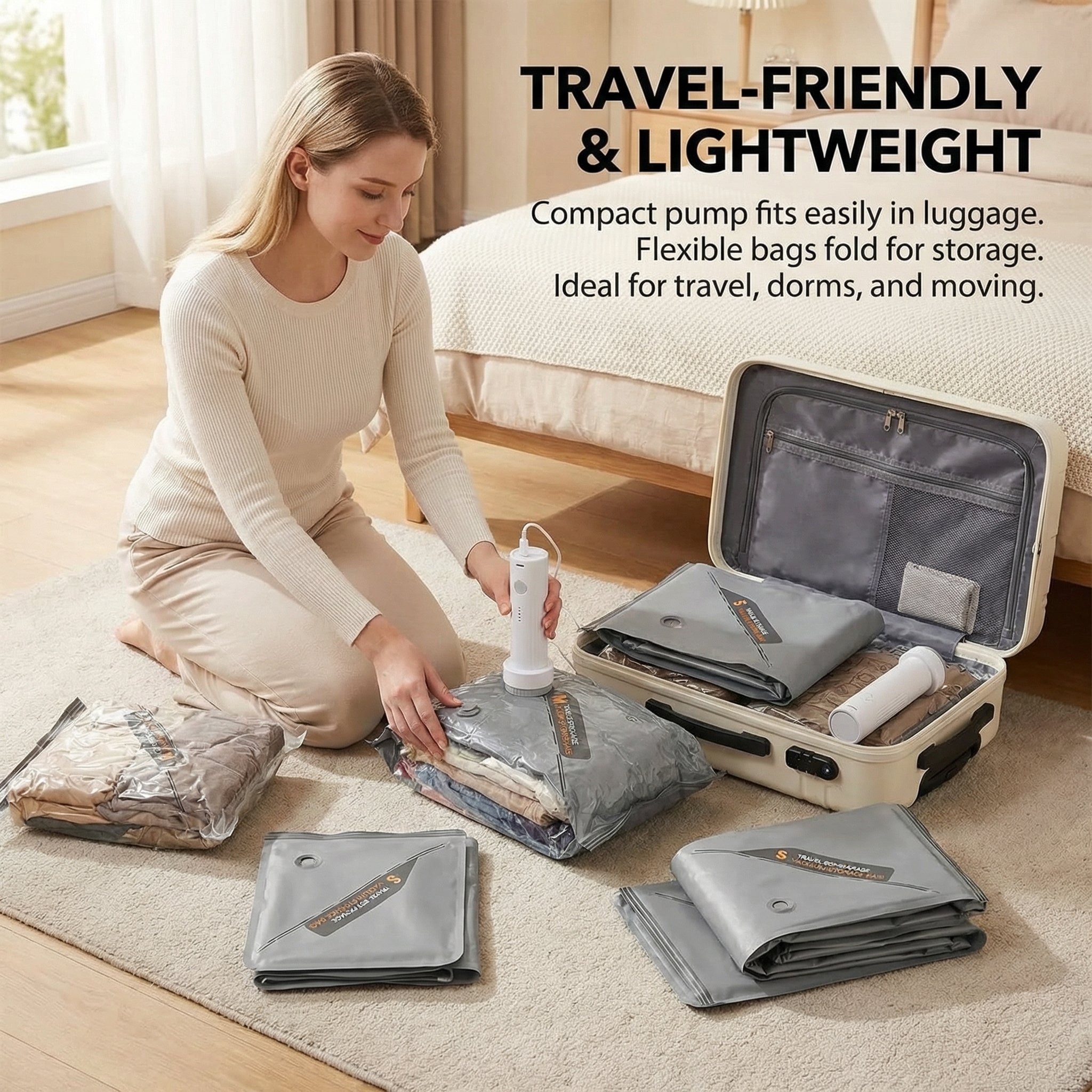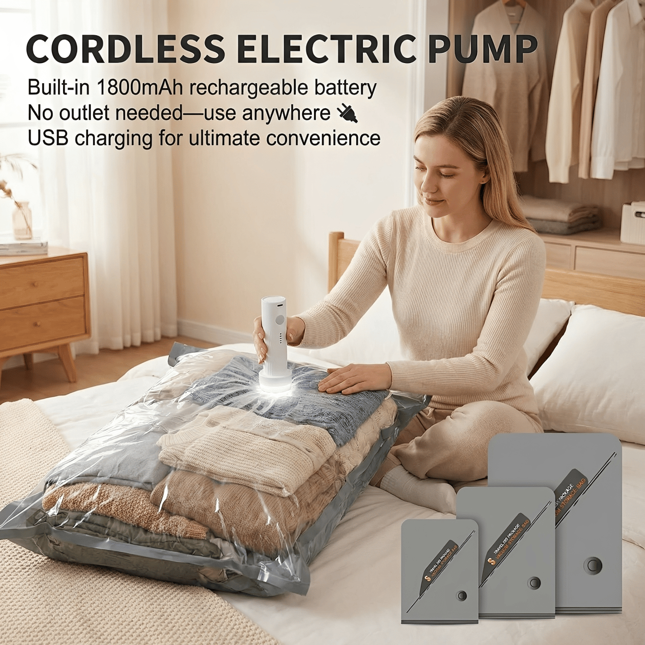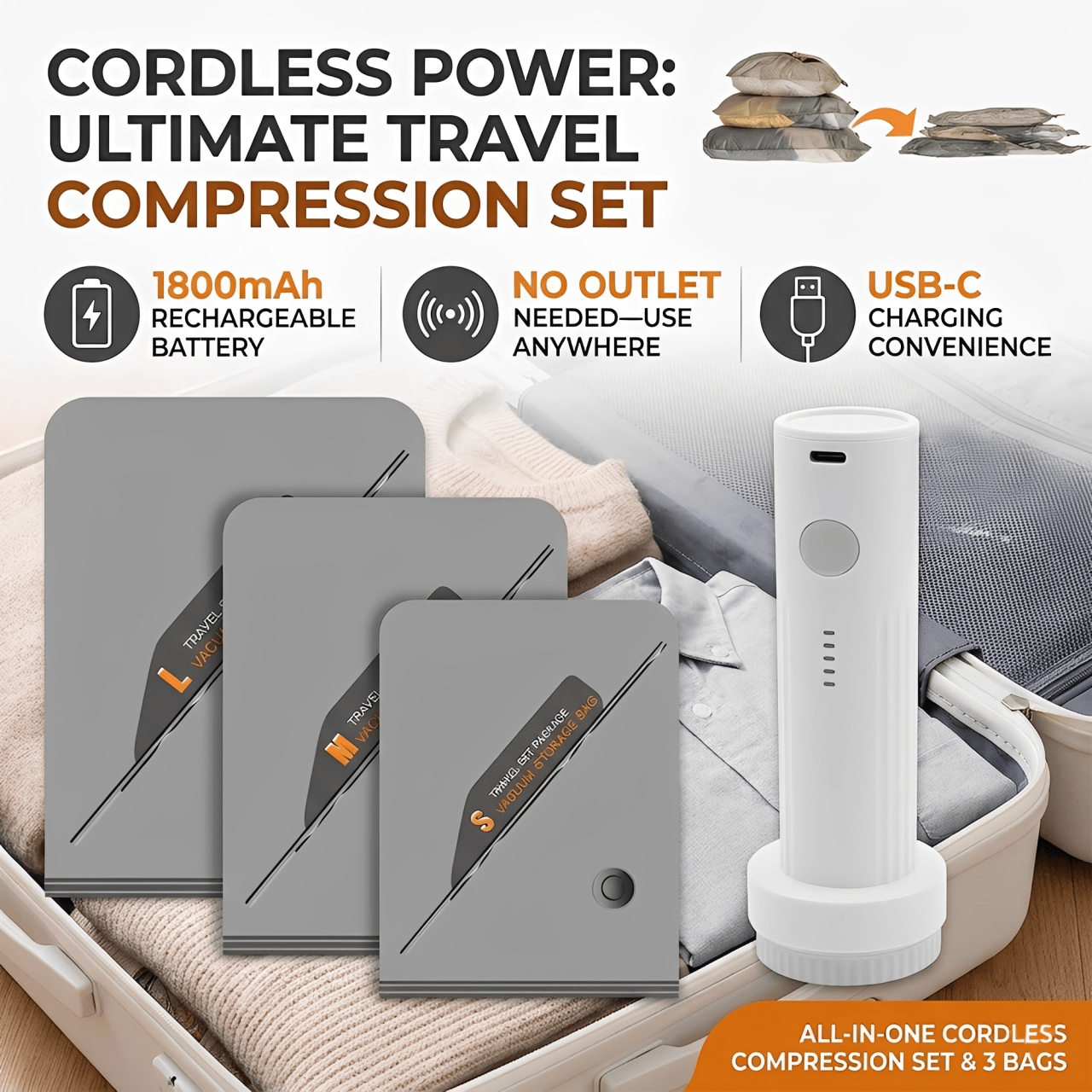 Running out of suitcase space? This cordless vacuum storage set helps you compress clothes quickly and efficiently
