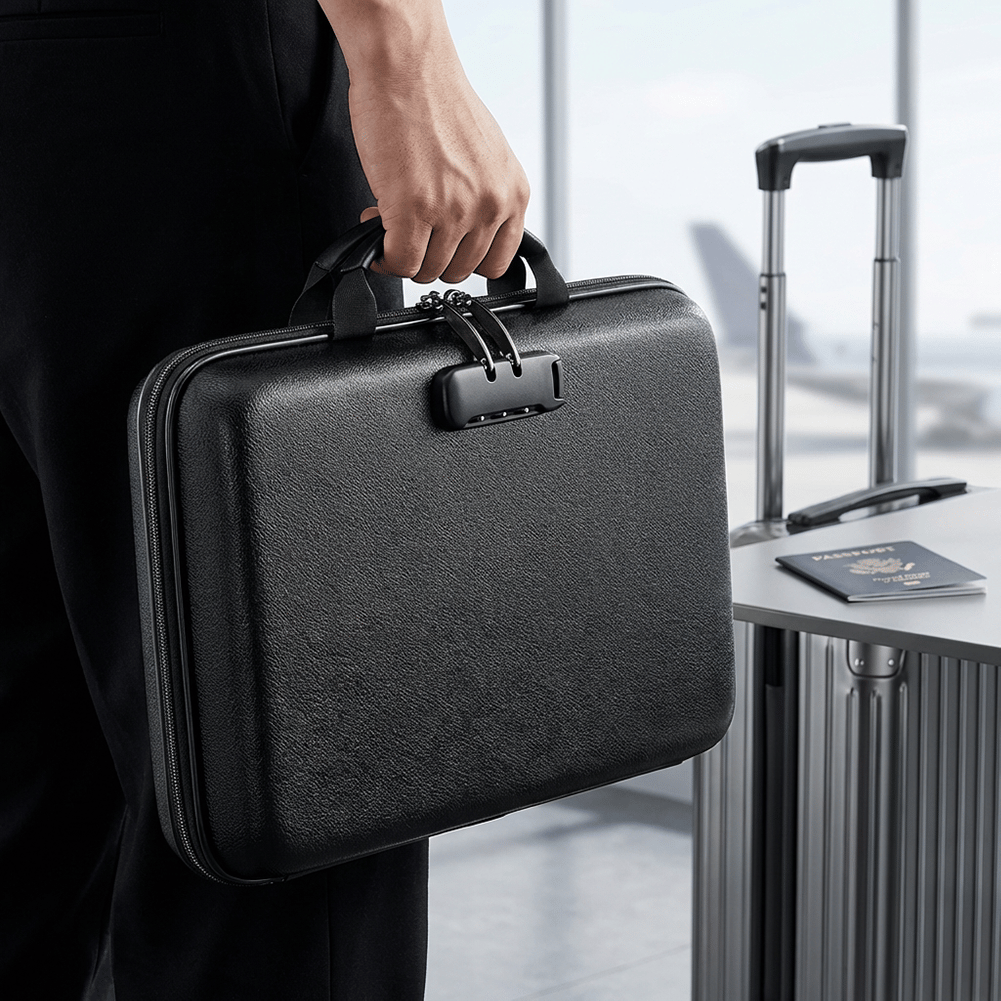 This hard-shell fireproof and waterproof document organizer is designed to provide strong, reliable protection at home, in the office, or while traveling.