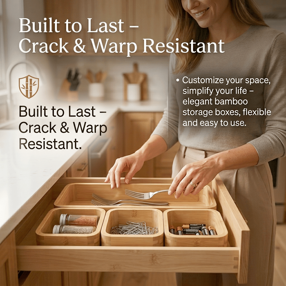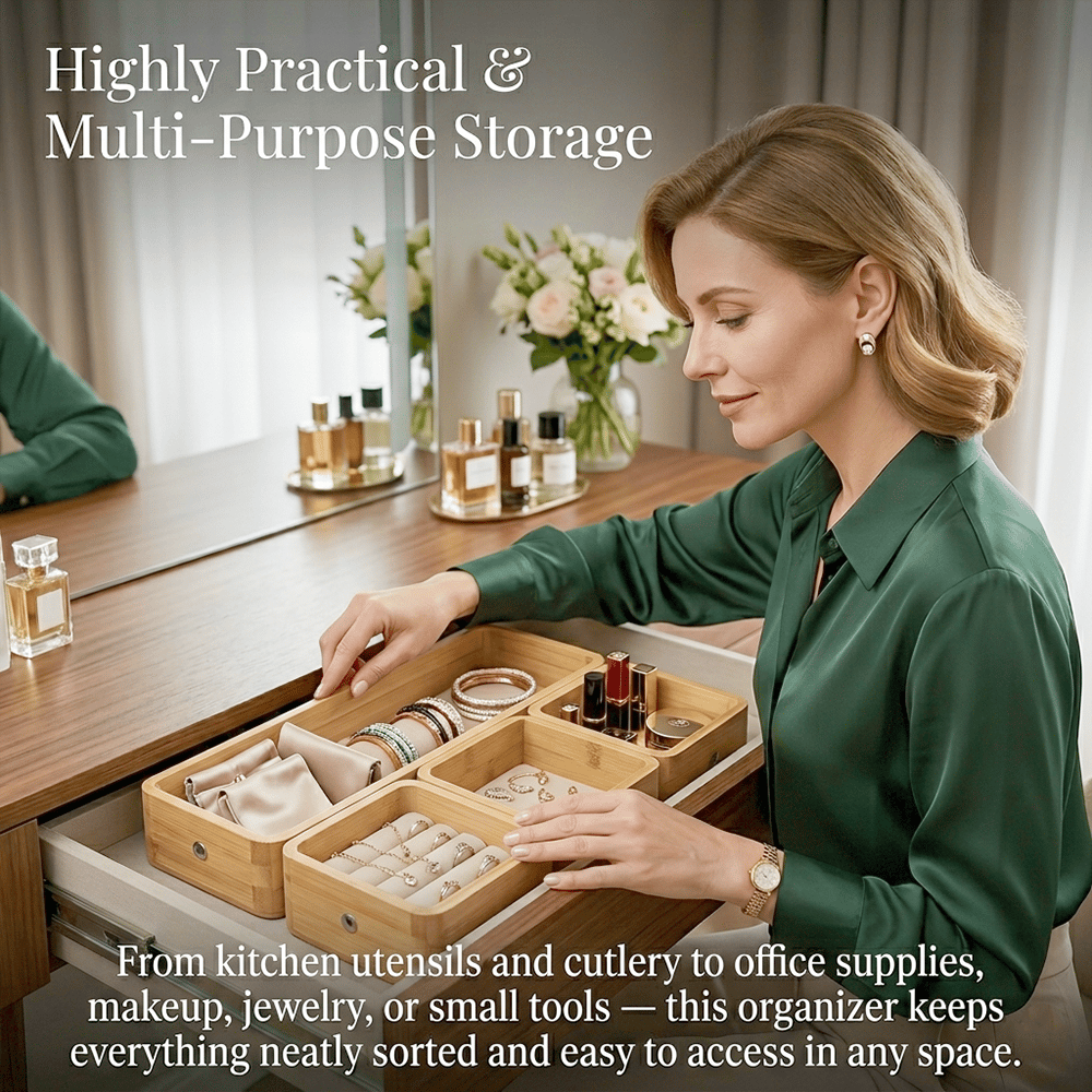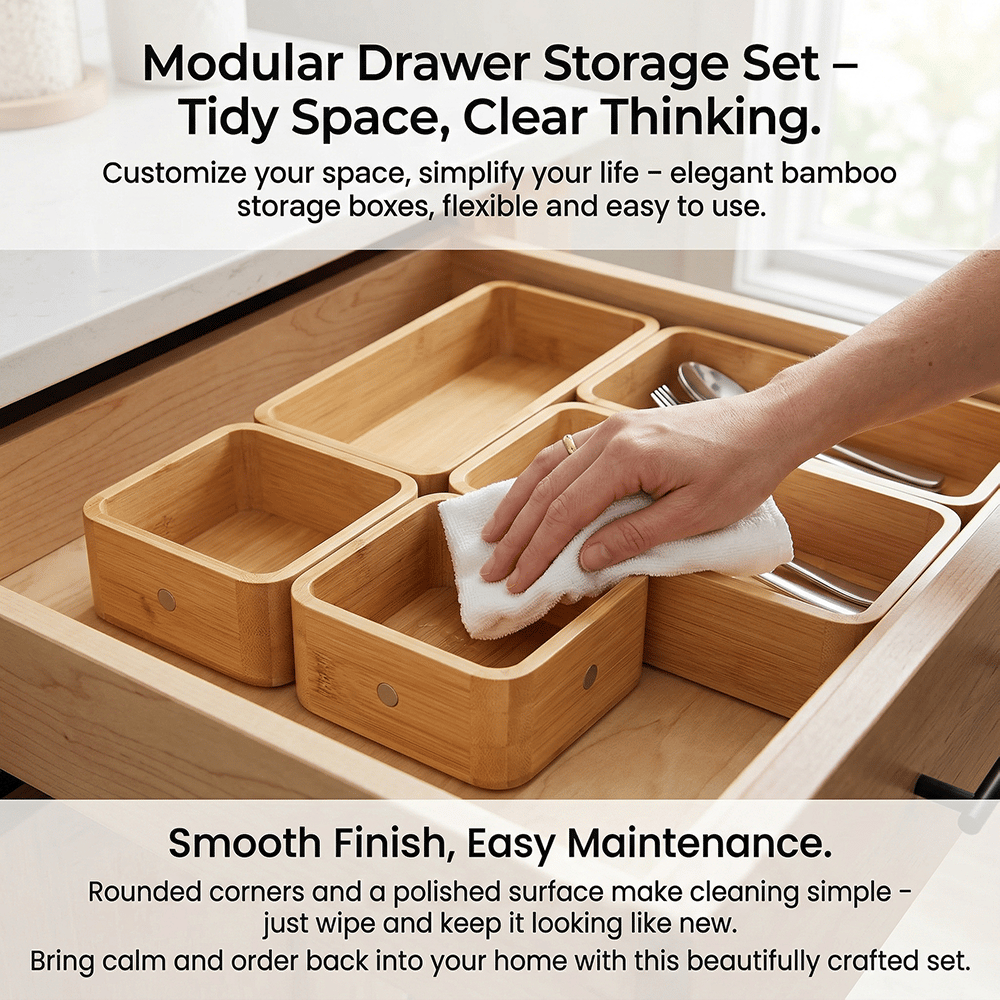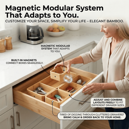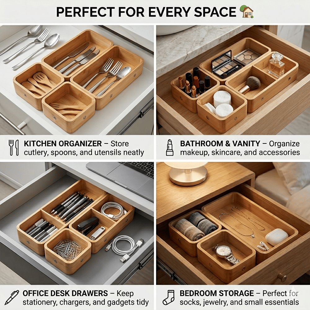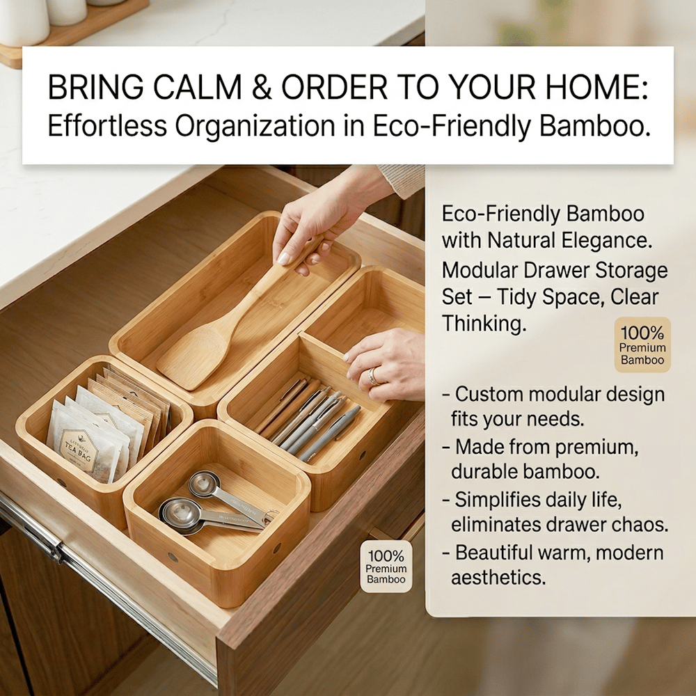 Bring calm and order back into your home with this beautifully crafted bamboo organizer set — designed for flexibility, durability, and effortless organization. ✨