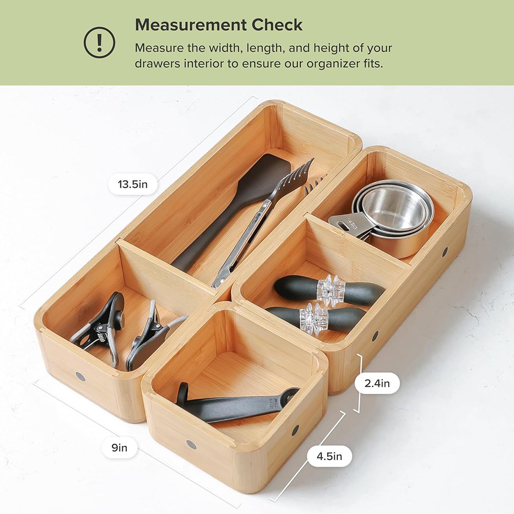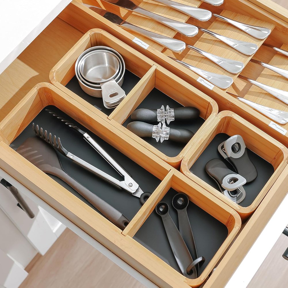 Upgrade your drawers with this versatile bamboo organizer and enjoy effortless organization every day.