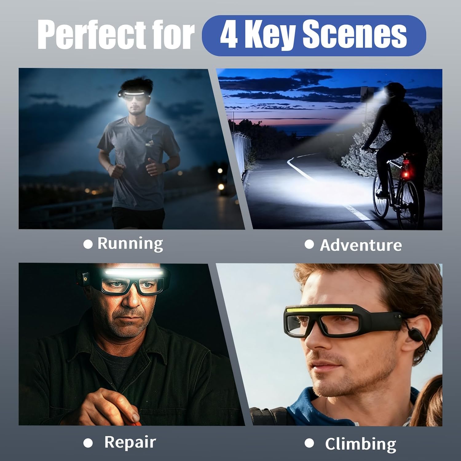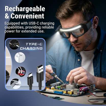 Whether you're working late, exploring outdoors, or fixing equipment in low light, these LED safety glasses are designed to keep your hands free and your vision clear.