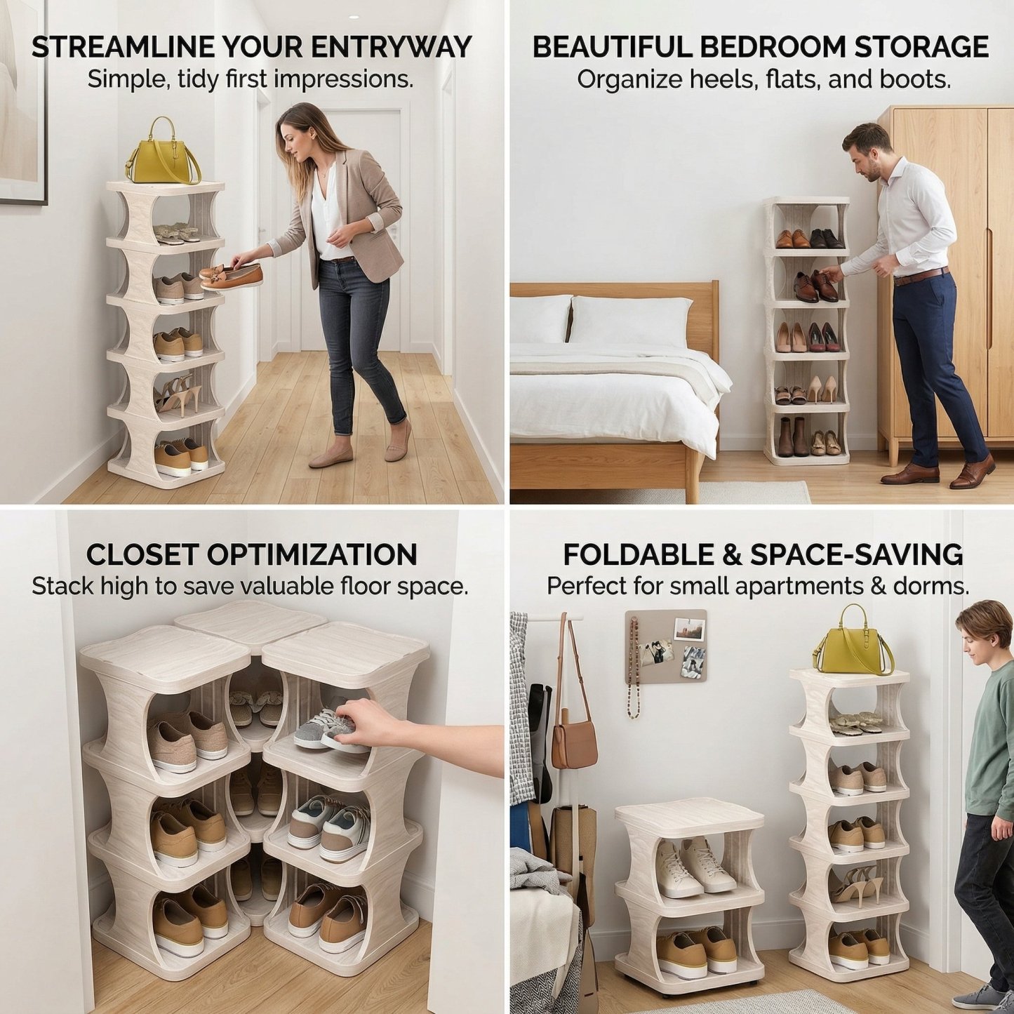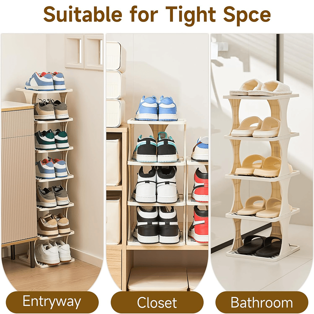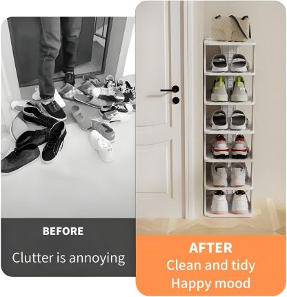 Tired of shoes scattered everywhere? This slim, vertical shoe rack is designed to fit tight spaces while keeping your footwear perfectly organized 👌