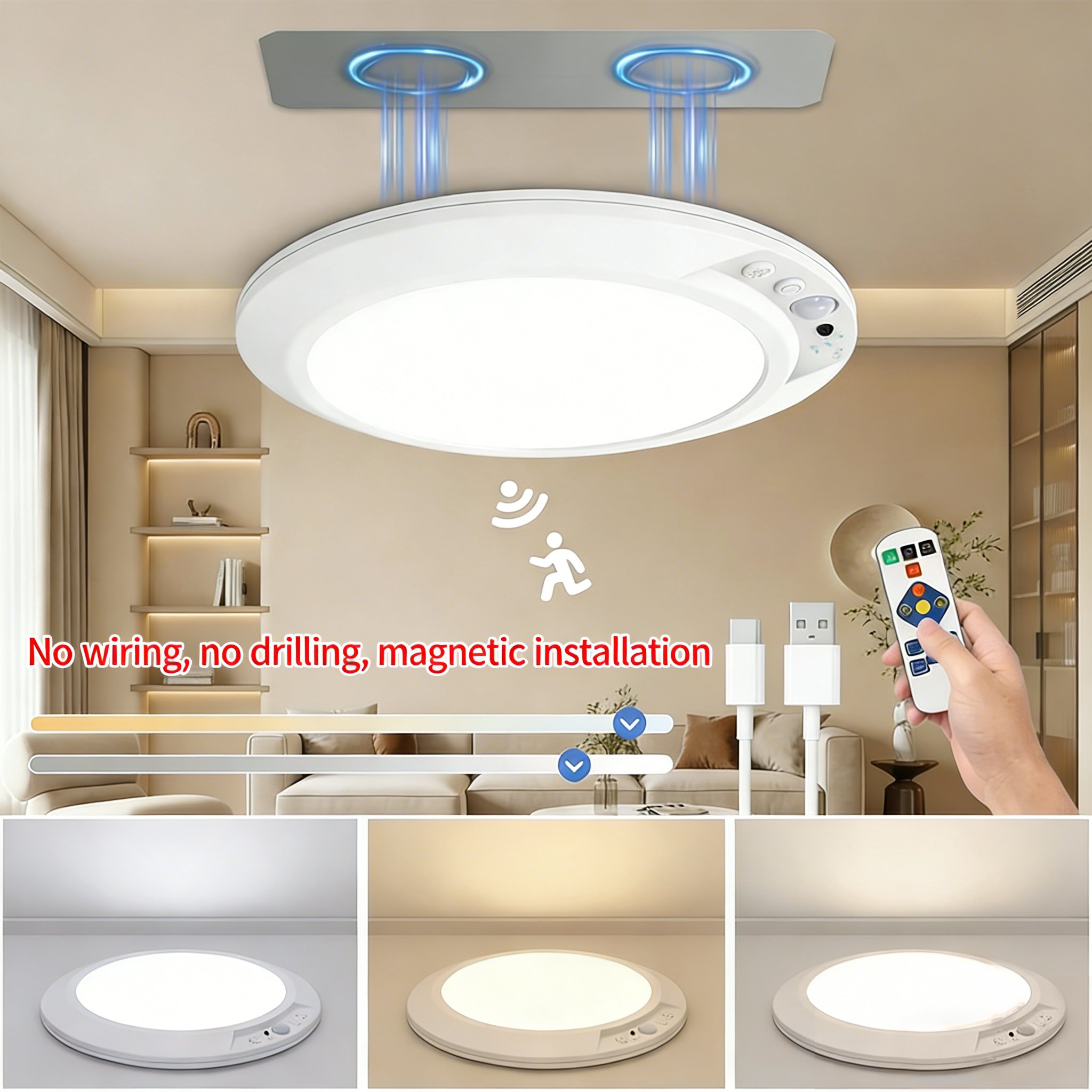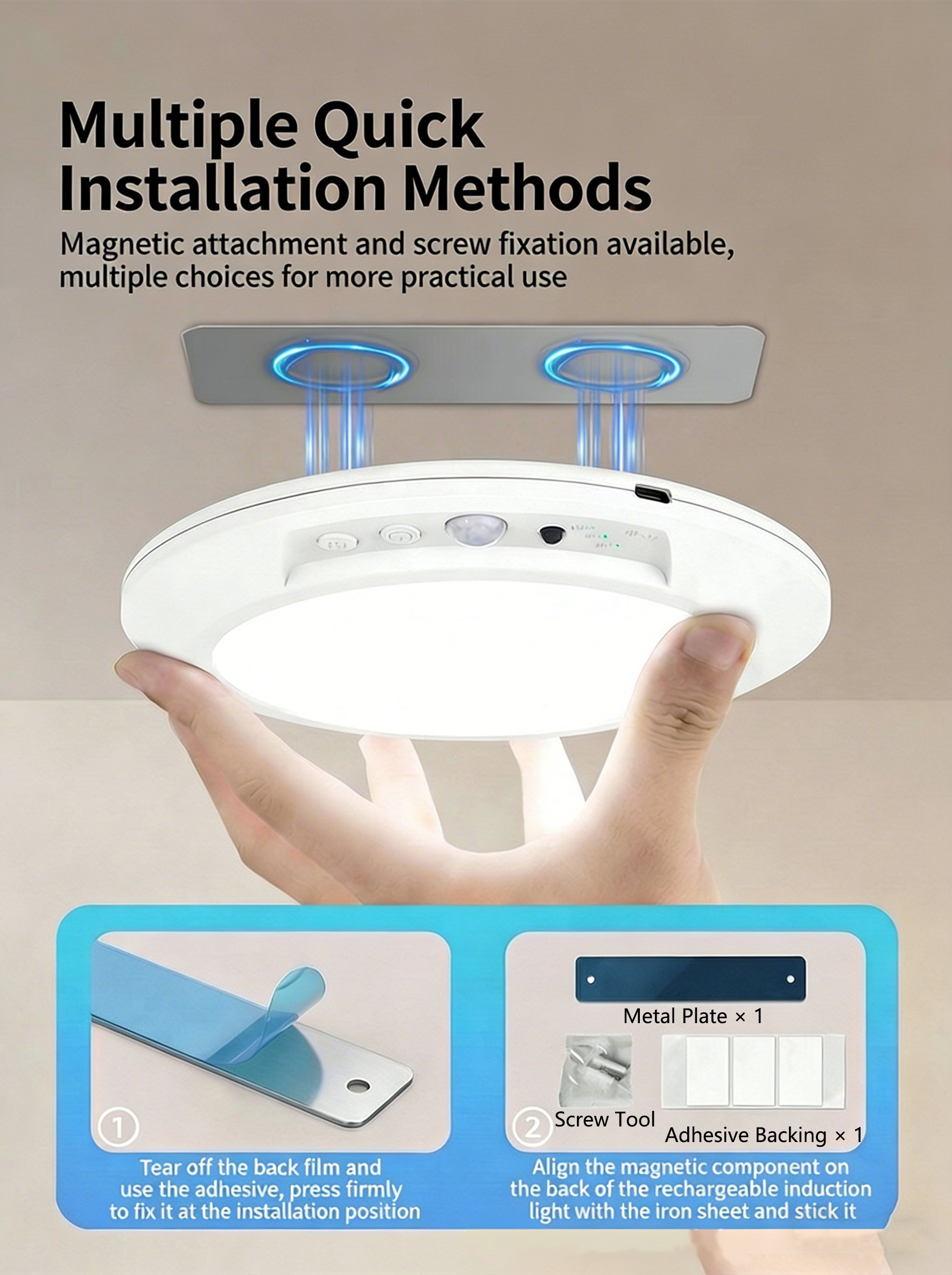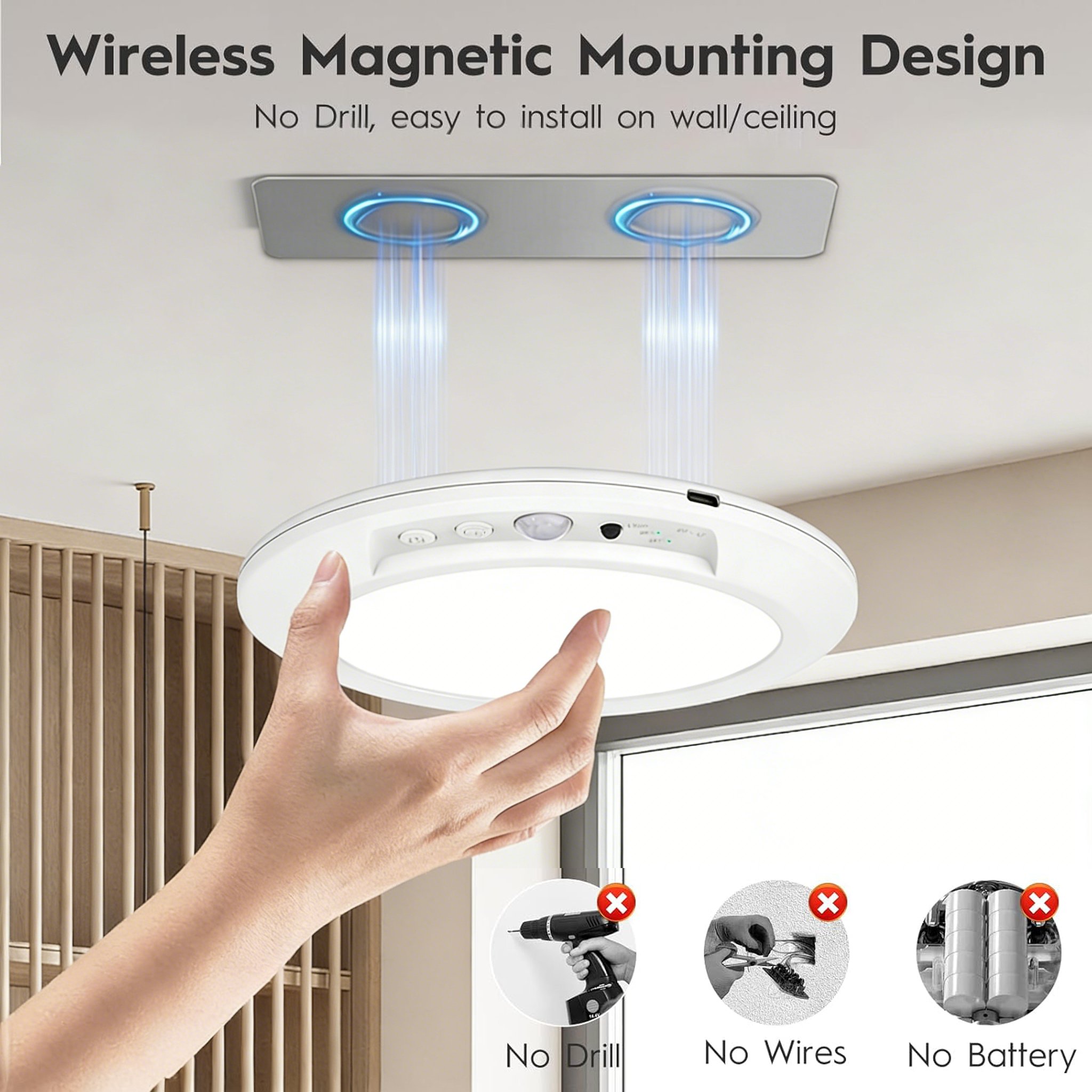 🧲 Wireless Magnetic Installation – No Tools Needed