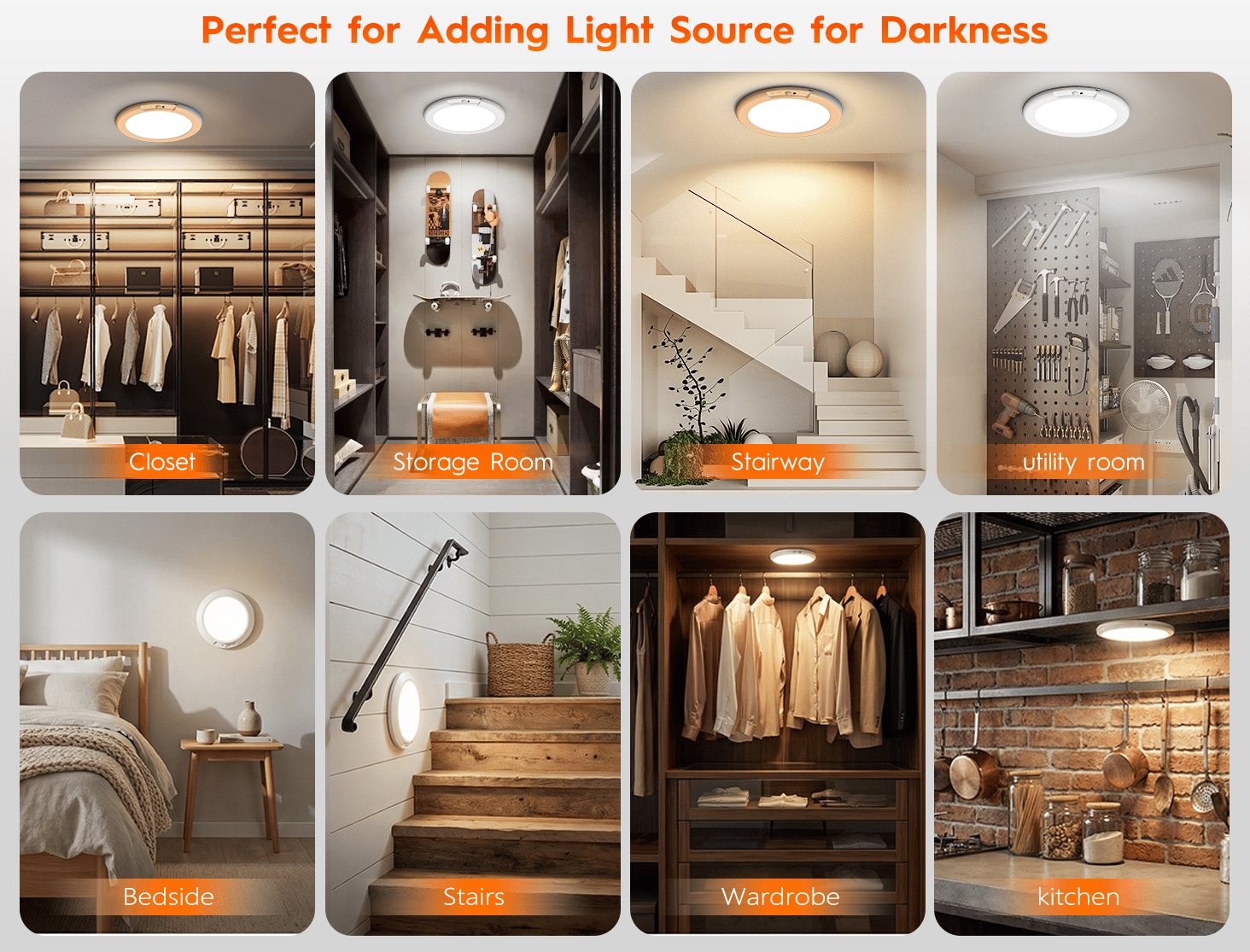 👉 Ideal for hallways, bathrooms, closets & stairs