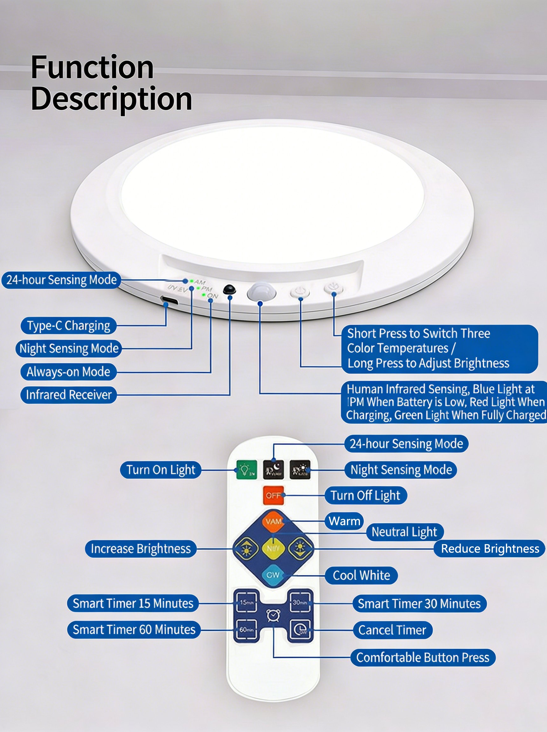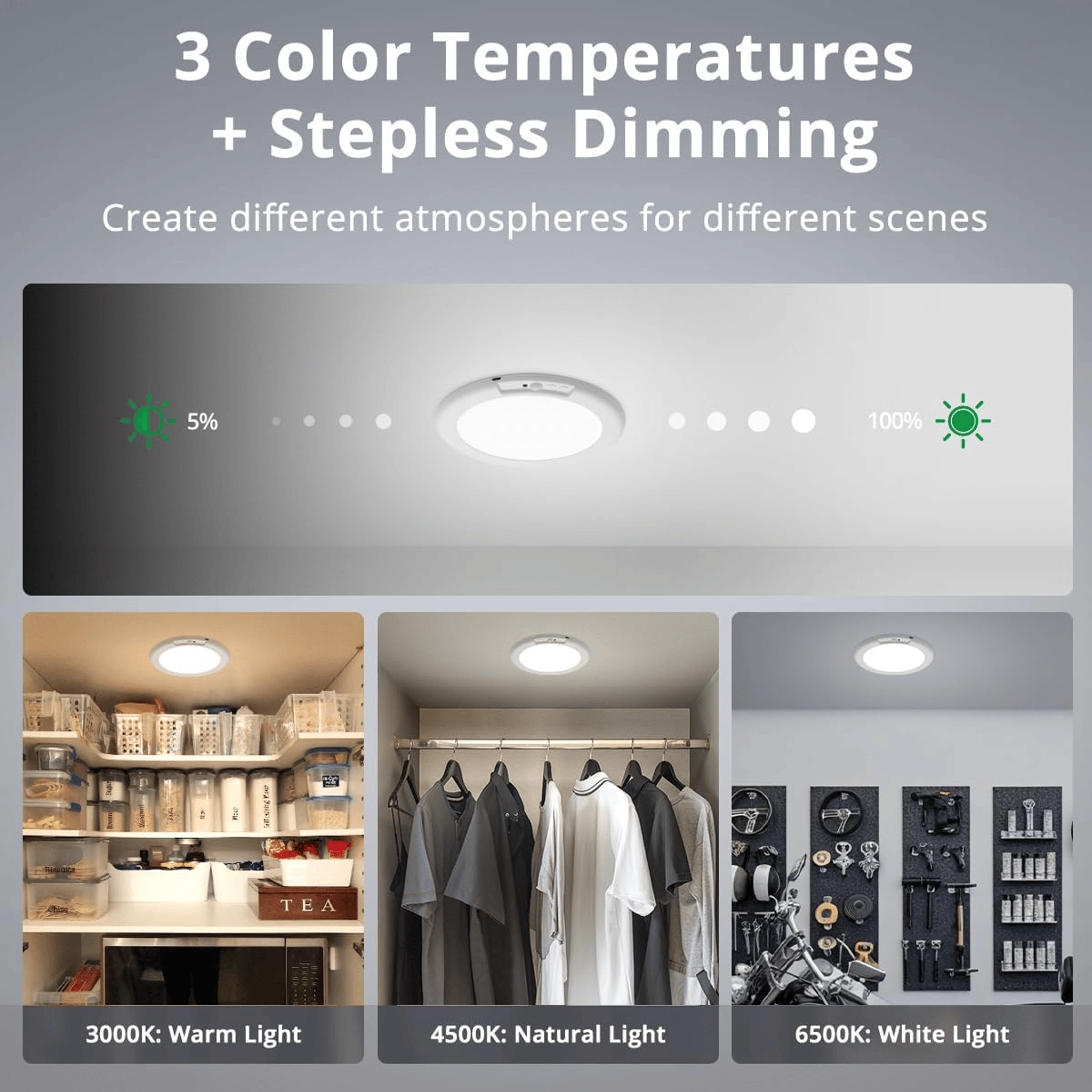 🎨 3 Color Temperatures + Adjustable Brightness
