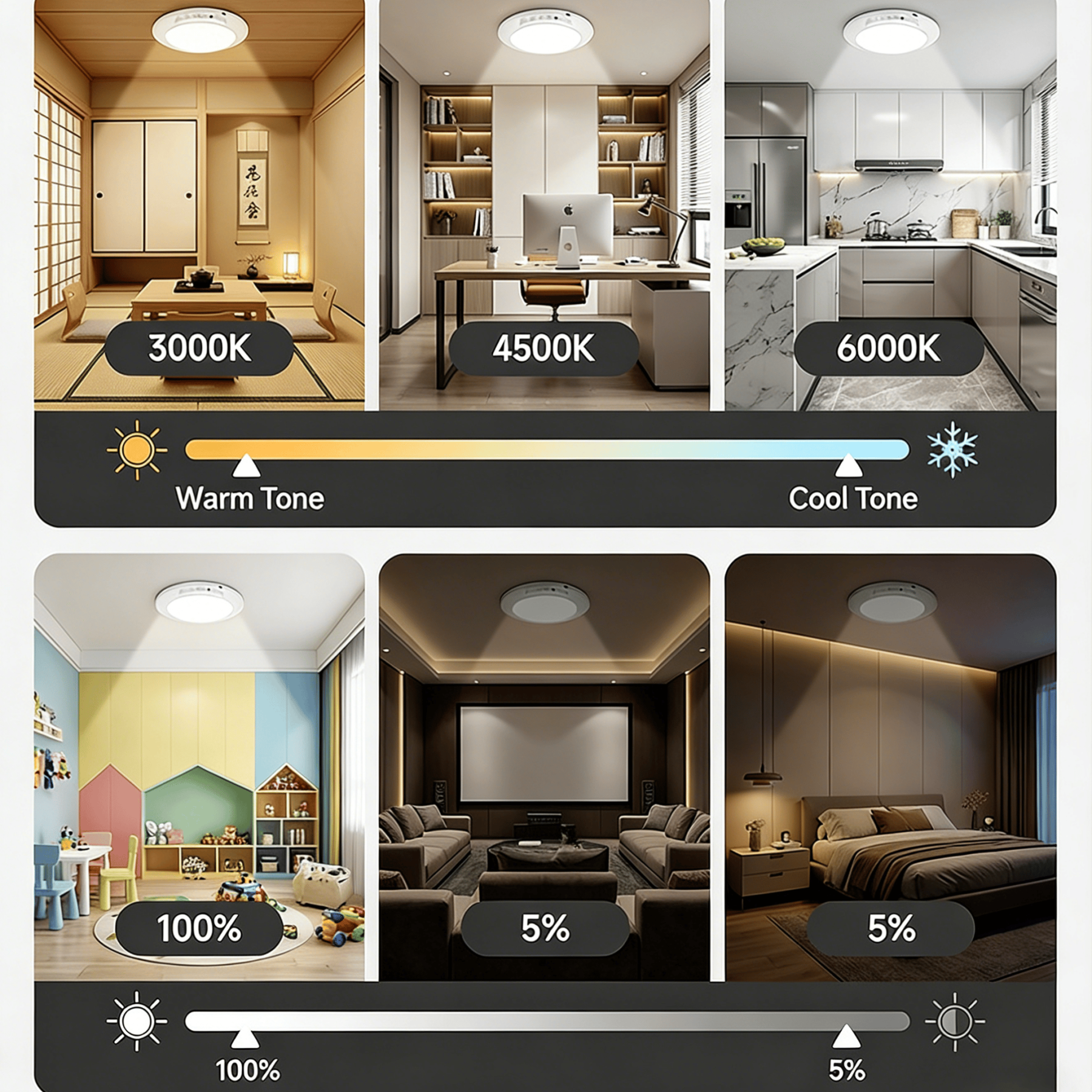 - 🌡️ Color Temperature: 3000K / 4500K / 6500K