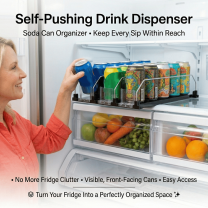 With this self-pushing drink organizer, every beverage stays neatly lined up, visible, and easy to grab — just like a professional display.