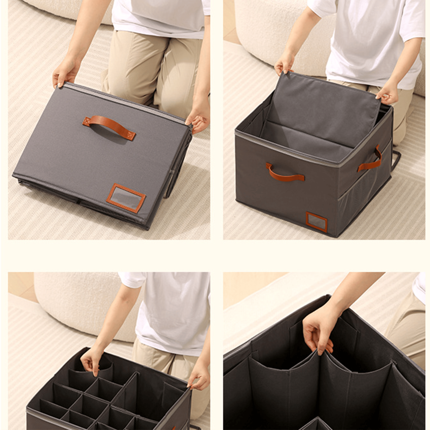 • Pull out from shelves, carry between rooms, or slide under beds
