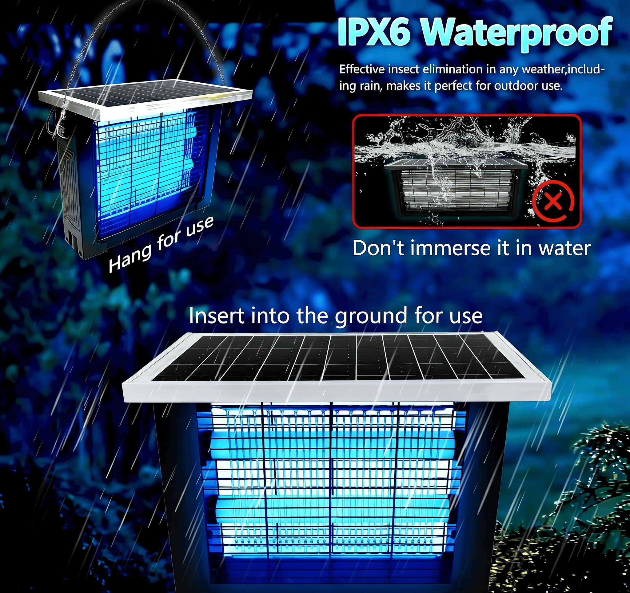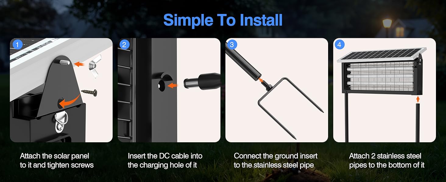 - Uses non-dazzling violet light to attract insects 🌌