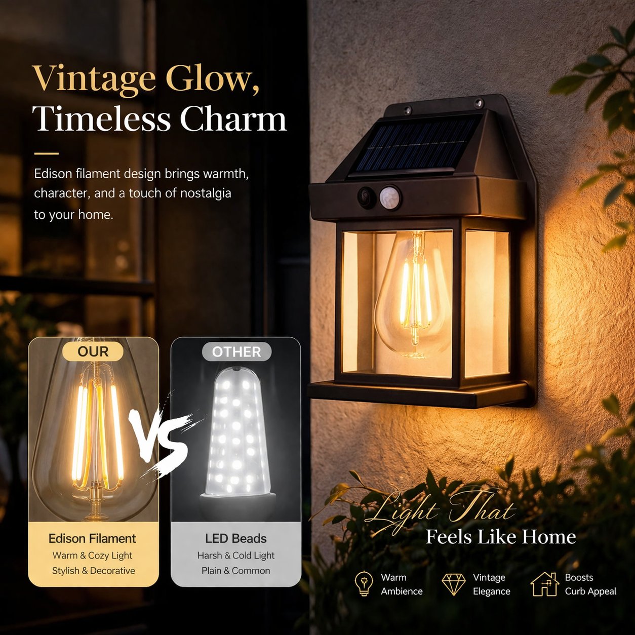 “The motion sensor is very responsive, and the vintage light style really upgraded my patio.”