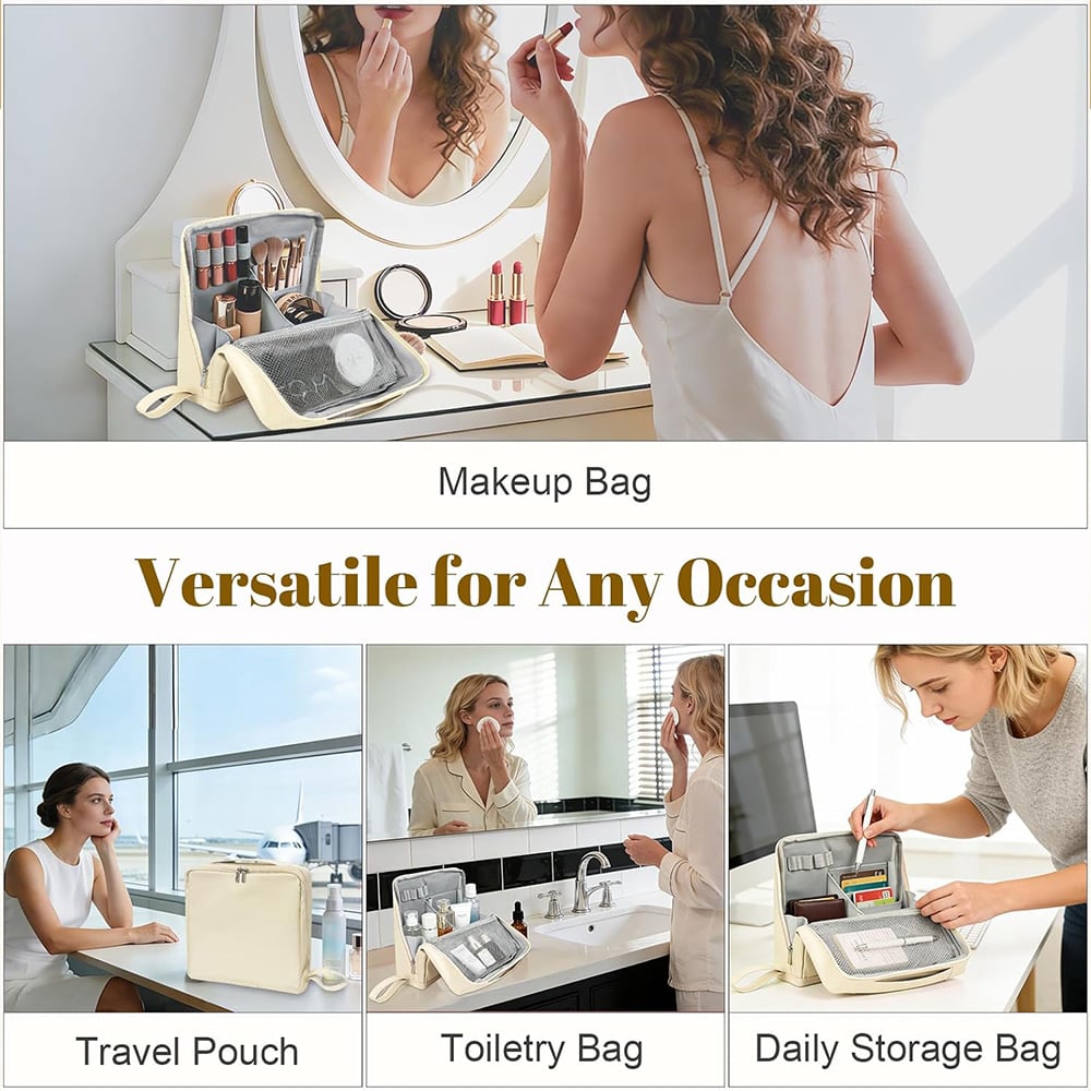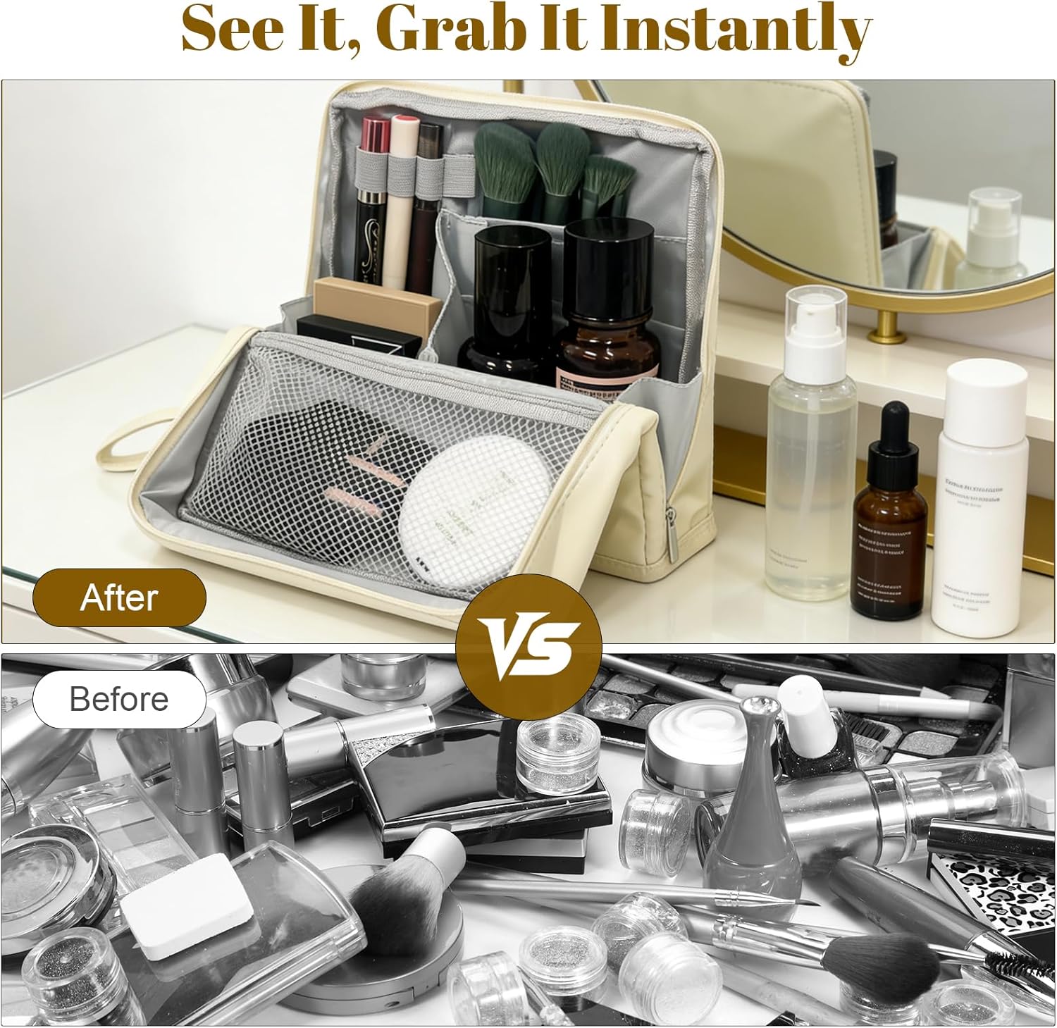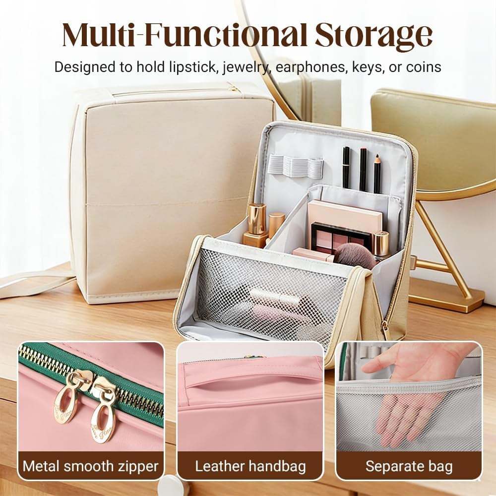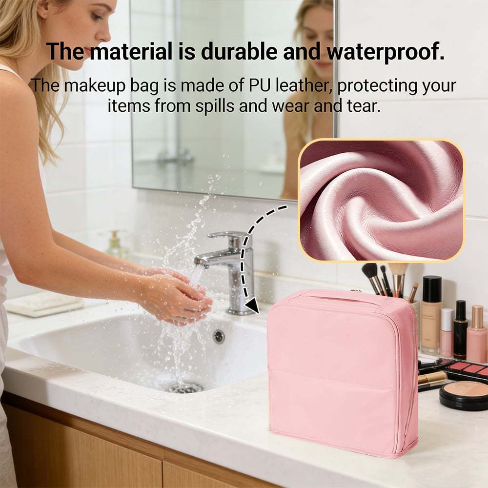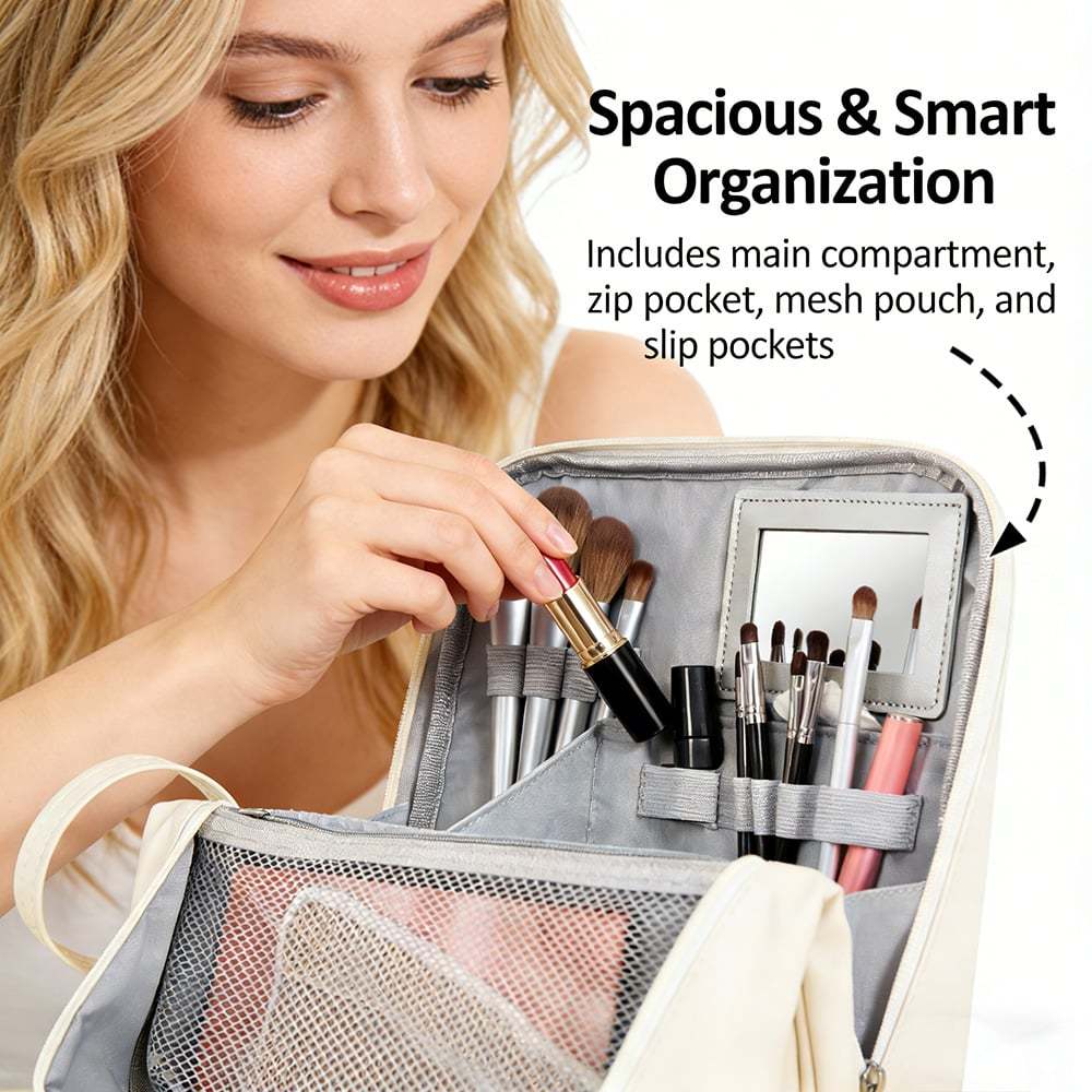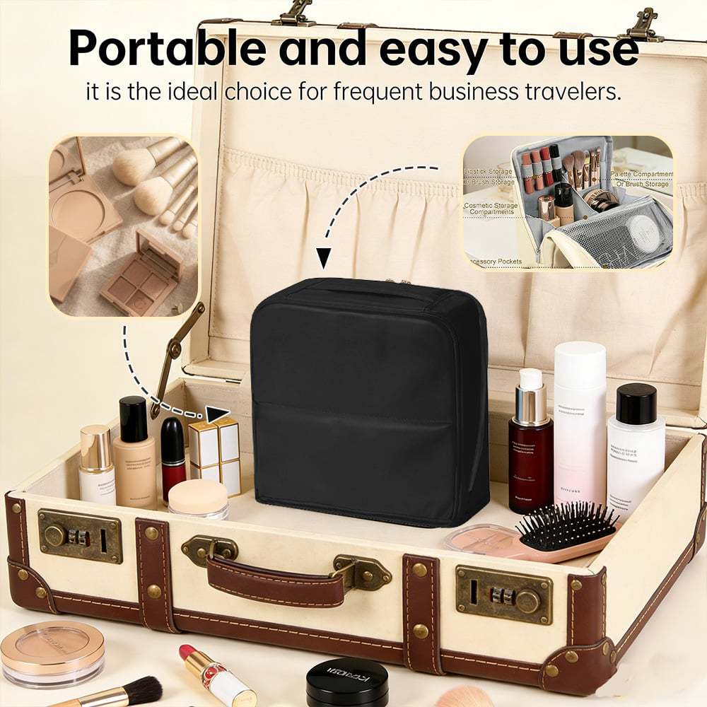 This upright, high-capacity cosmetic organizer keeps everything neatly arranged, visible, and easy to access — whether you're at home or on the go.