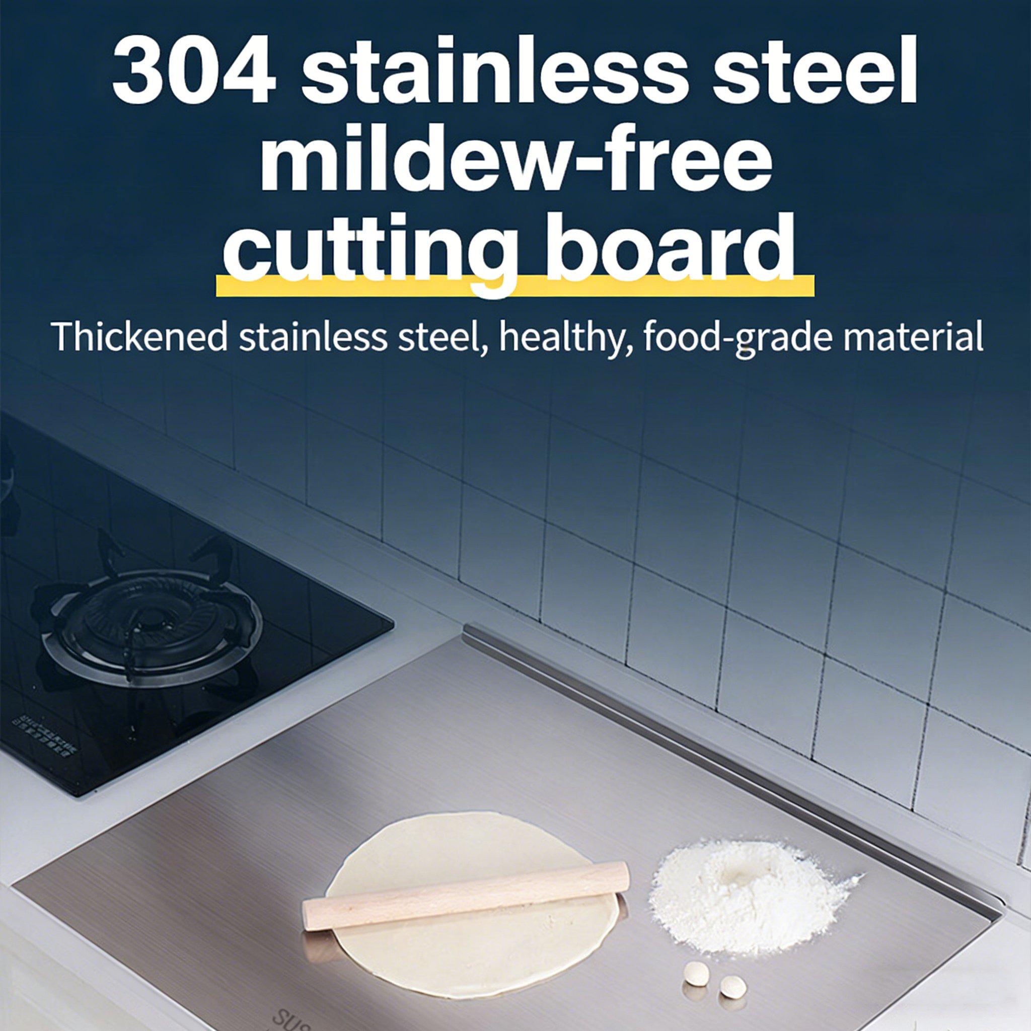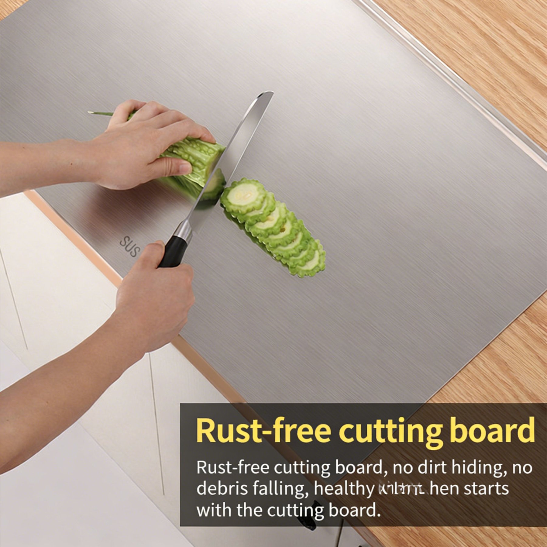 Unlike wood boards that can absorb liquids and harbor bacteria, stainless steel provides a non-porous surface that helps maintain better kitchen hygiene.