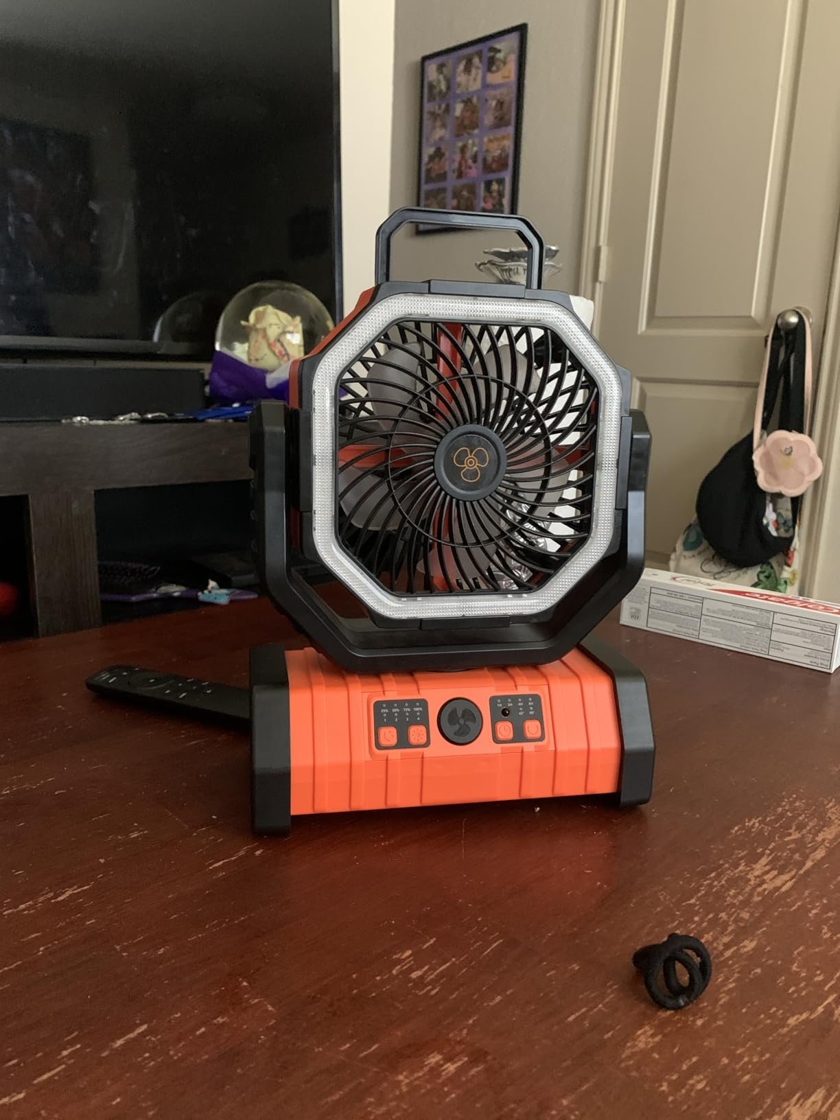 "This fan is a game-changer for our family camping trips! The 20000mAh battery lasted our entire 3-day trip—we used it for cooling at night and charged our phones when we had no service. The remote control is so convenient, and the sleep mode keeps it quiet so we all slept great. The orange color is bright and easy to spot in the tent. 10/10 recommend!"